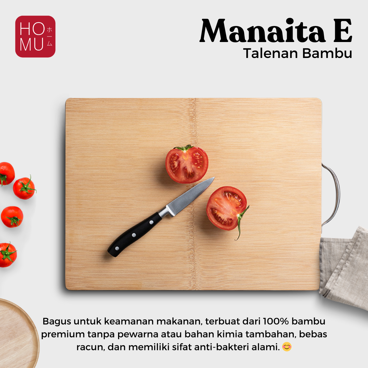 – Hasil finishing bambunya yang mulus dan tahan lama, sehingga aman untuk digunakan dan aman untuk pisau anda.