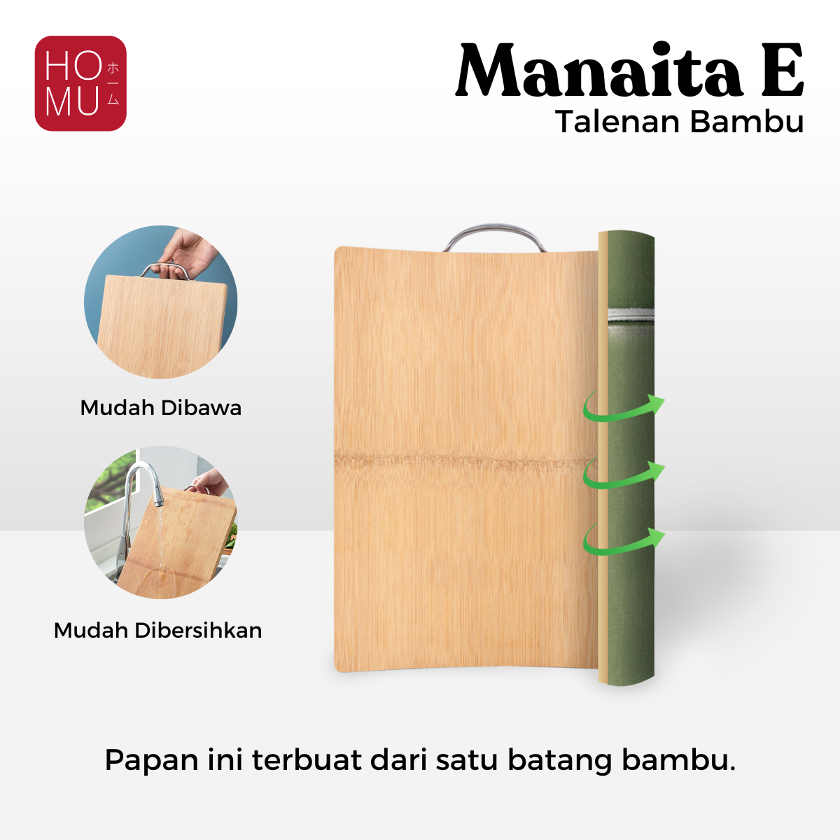 Material : 100% Bambu Alami Premium dan Gagang Stainless