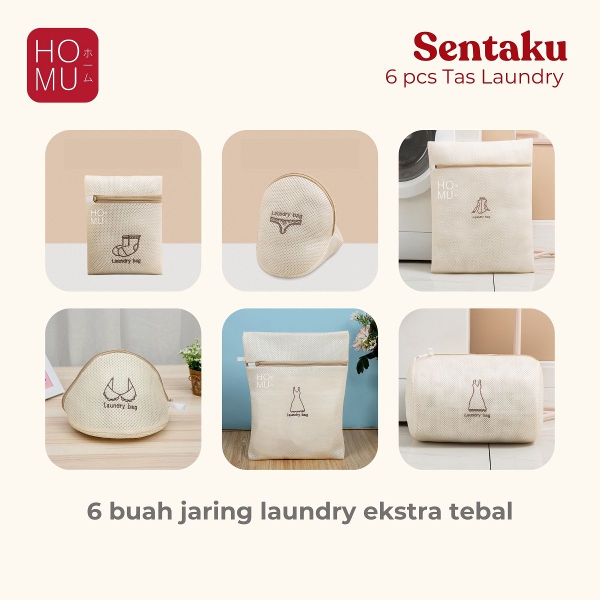 HOMU SENTAKU 6 PCS Laundry Net Bag Kantong Jaring Pelindung Cuci Baju Mesin Extra Tebal